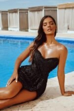 Black Sexy Prom Dresses with Glitter High Split Evening Maxi Dress