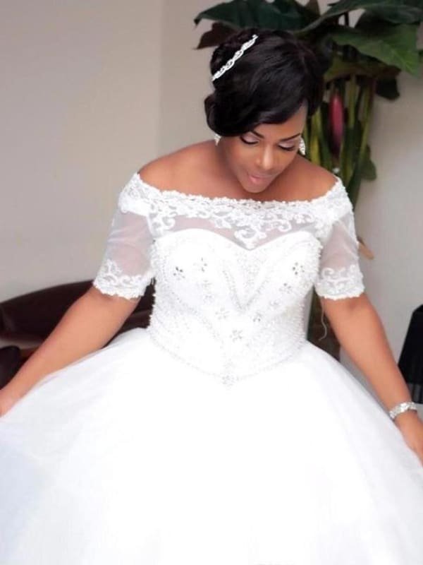 Elegant Cap Sleeve Lace Appliques A-Line Wedding Dresses