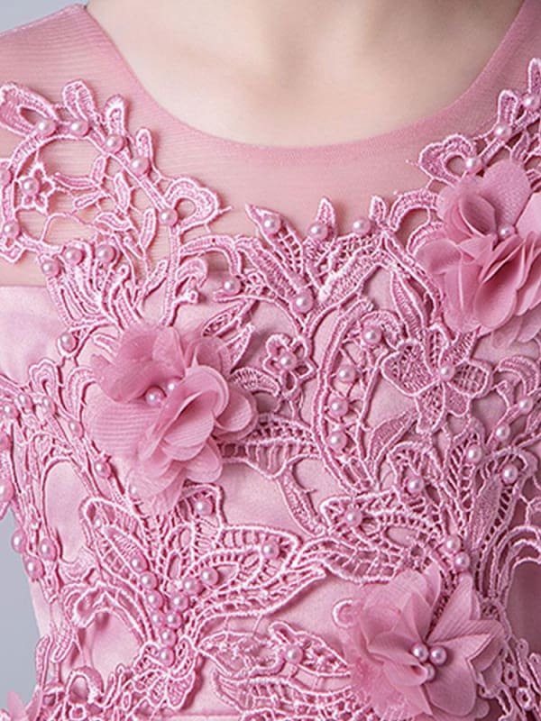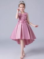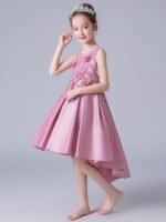 Jewel Neck Sleeveless Hi-Lo Flower Girl Dresses Embroidered Formal Kids Pageant Dresses