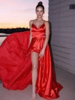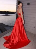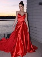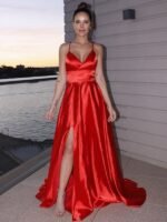 Satin V-neck Sleeveless Party Wear Dresses Aline Formal Dress