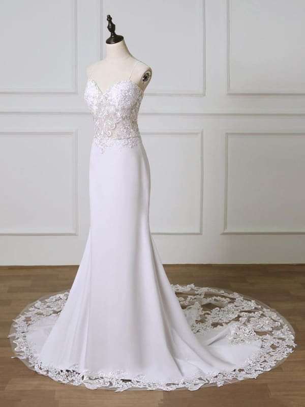 Spaghetti Straps Boho Mermaid Lace Wedding Dresses with Train